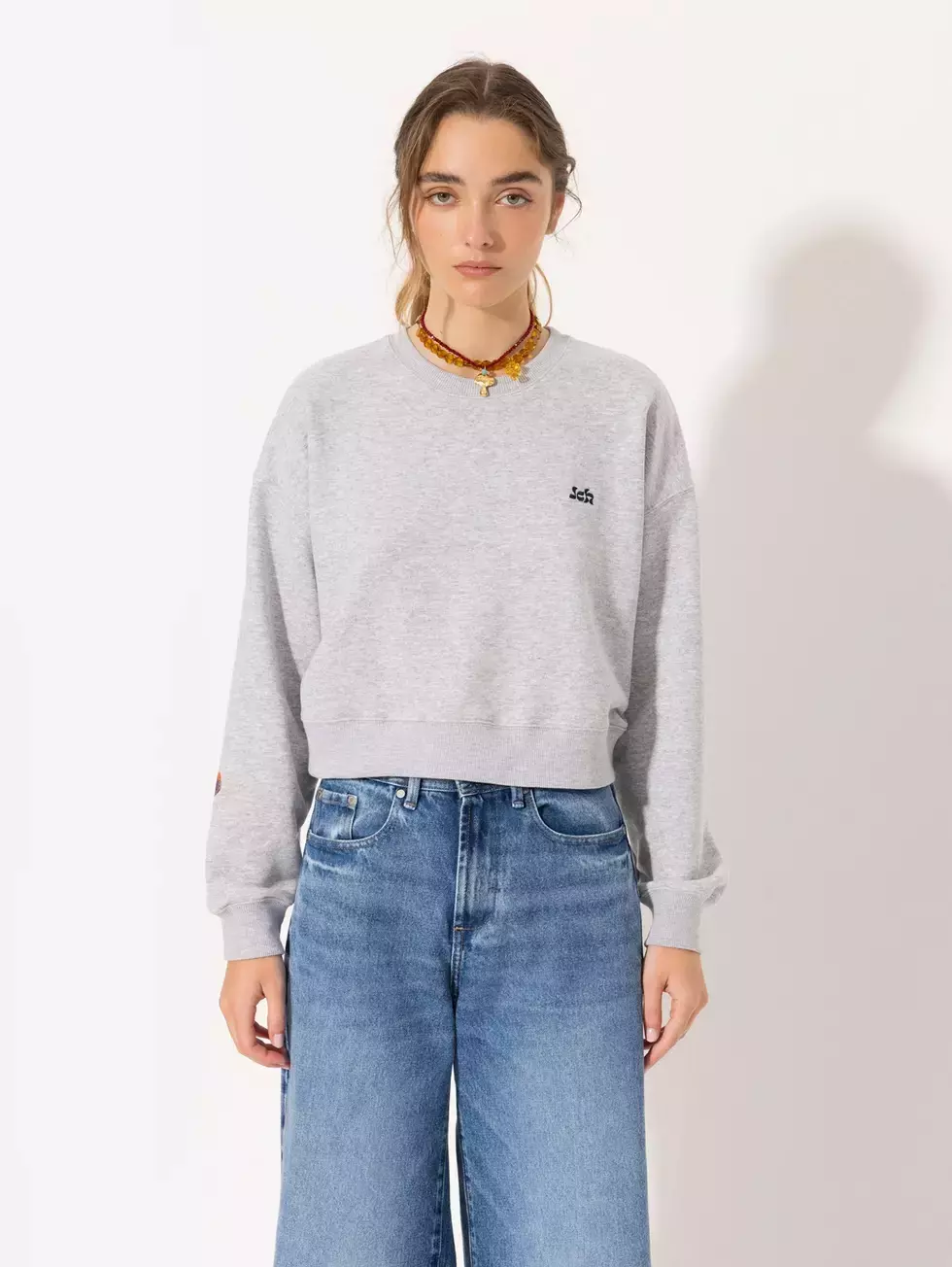Buzo Fungi realizado en rústico melange. Incluye escote redondo, mangas largas, puños y cintura en tela complemento para un ajuste cómodo. Lleva un bordado de honguito y logo JCH, que aportan un detalle lúdico y distintivo.