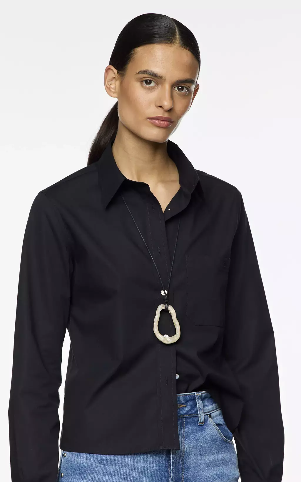 Collar compuesto por dos piezas irregulares, una de resina y una de zamac con baño niquelado. Se sujeta a traves de cordon enroscado de algodón, el mismo posee en sus extremos terminales metalicas con chapita marcaria. Aporta textura y color con un diseño de inspiración artesanal que realza cualquier conjunto con naturalidad.
