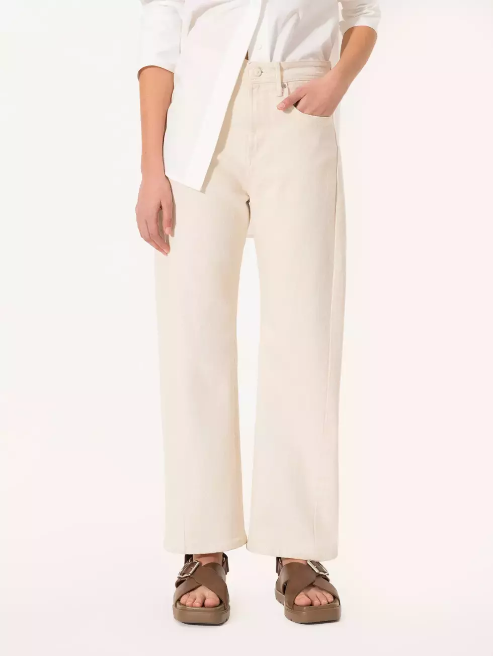 Jeans Mick Nude de corte recto y largo más corto, diseñado para calzar justo por debajo de los tobillos. Con un aire masculino, presenta caja relajada y cuadrada que aporta comodidad. El recorte triangular en los laterales estiliza la silueta y genera reservas de color en los lavados, sumando contraste y textura. Este lavado incluye un toque de lycra en el tejido, ideal para quienes prefieren un denim más liviano y anatómico.