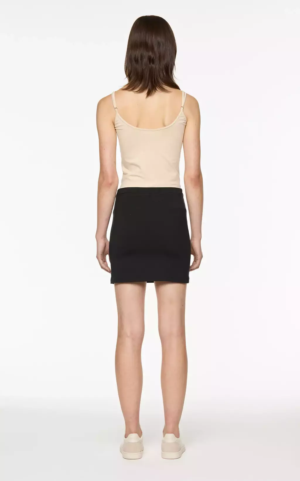 Pollera corta de tela de punto, con elástico en cintura. Tiene corona bordada a tono en el delantero. Diseñada para acompañar looks frescos y auténticos, sin resignar comodidad ni estilo.