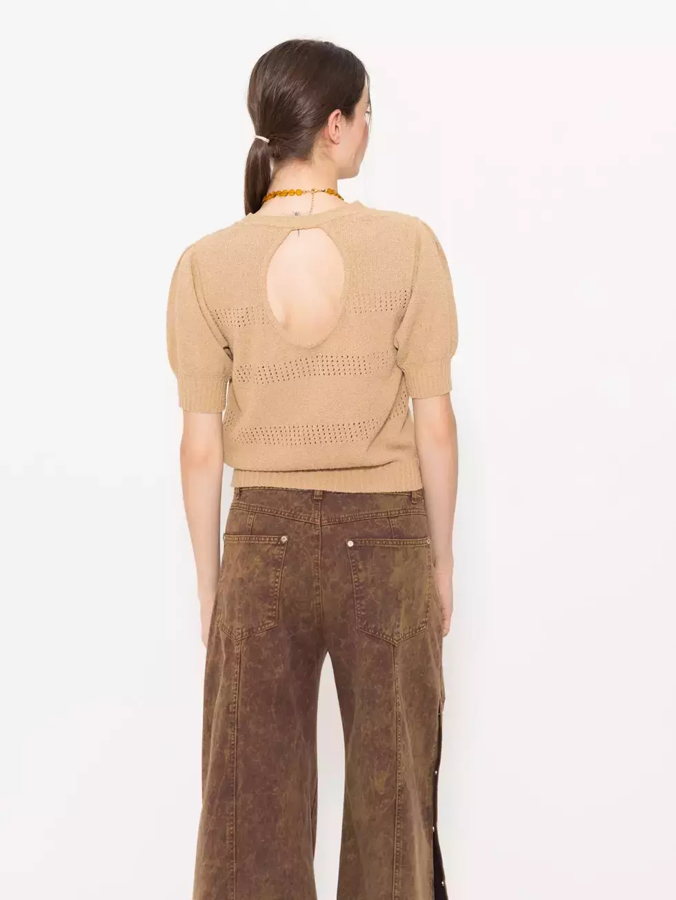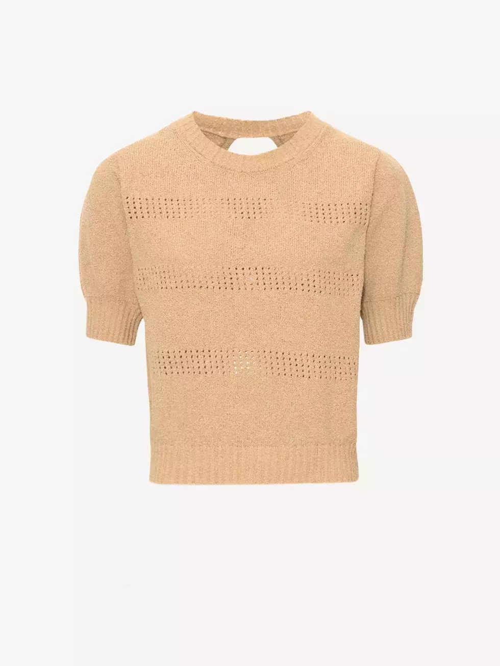 Sweater Colors tejido en bucle, mangas cortas y espalda con abertura. Largo a la primer cadera.