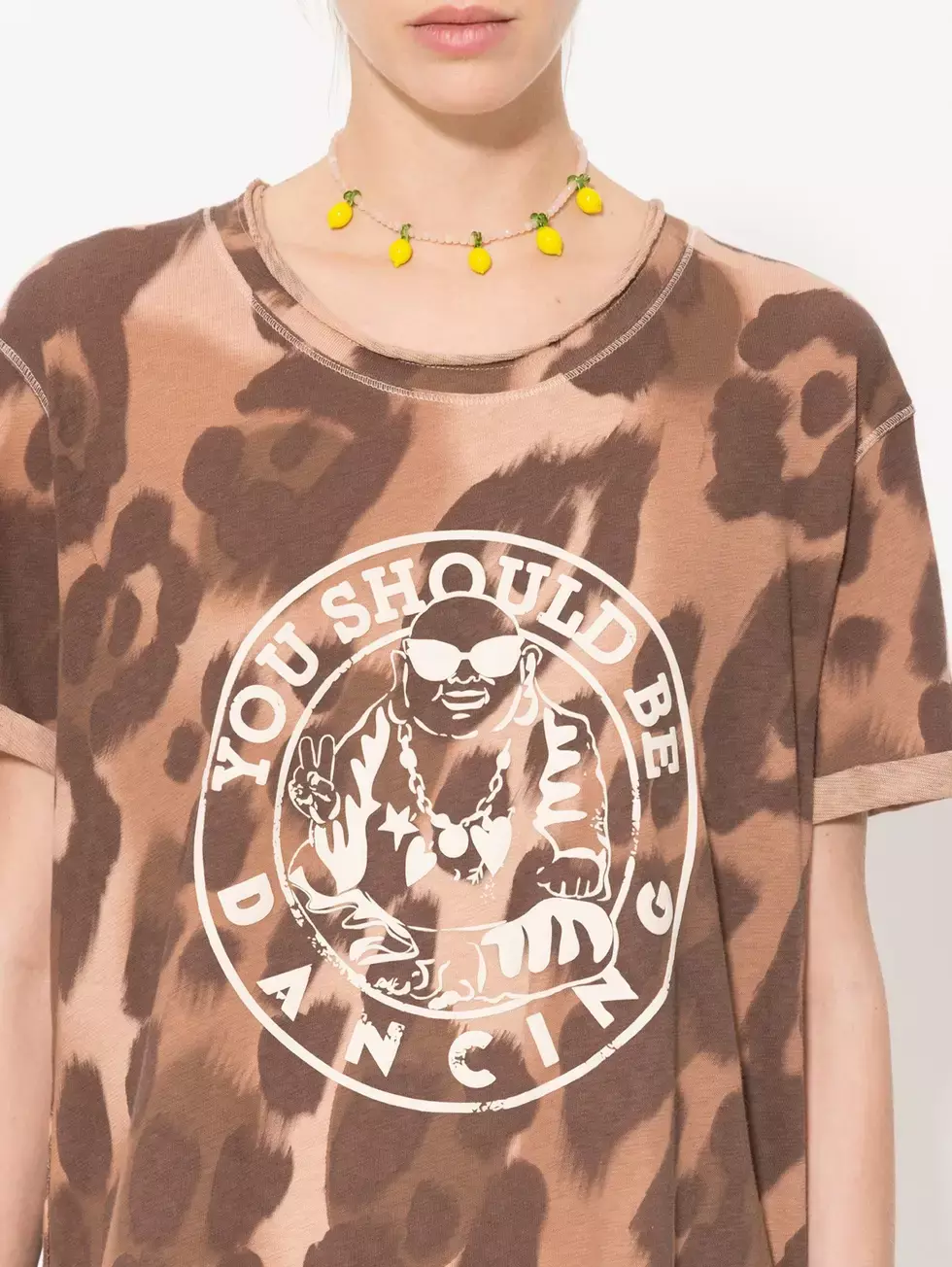 Túnica Animal confeccionada en punto, larga por debajo de la cadera. Lleva estampa full print con diseño en el delantero. Es de mangas cortas, cuello redondo y tajos laterales.
