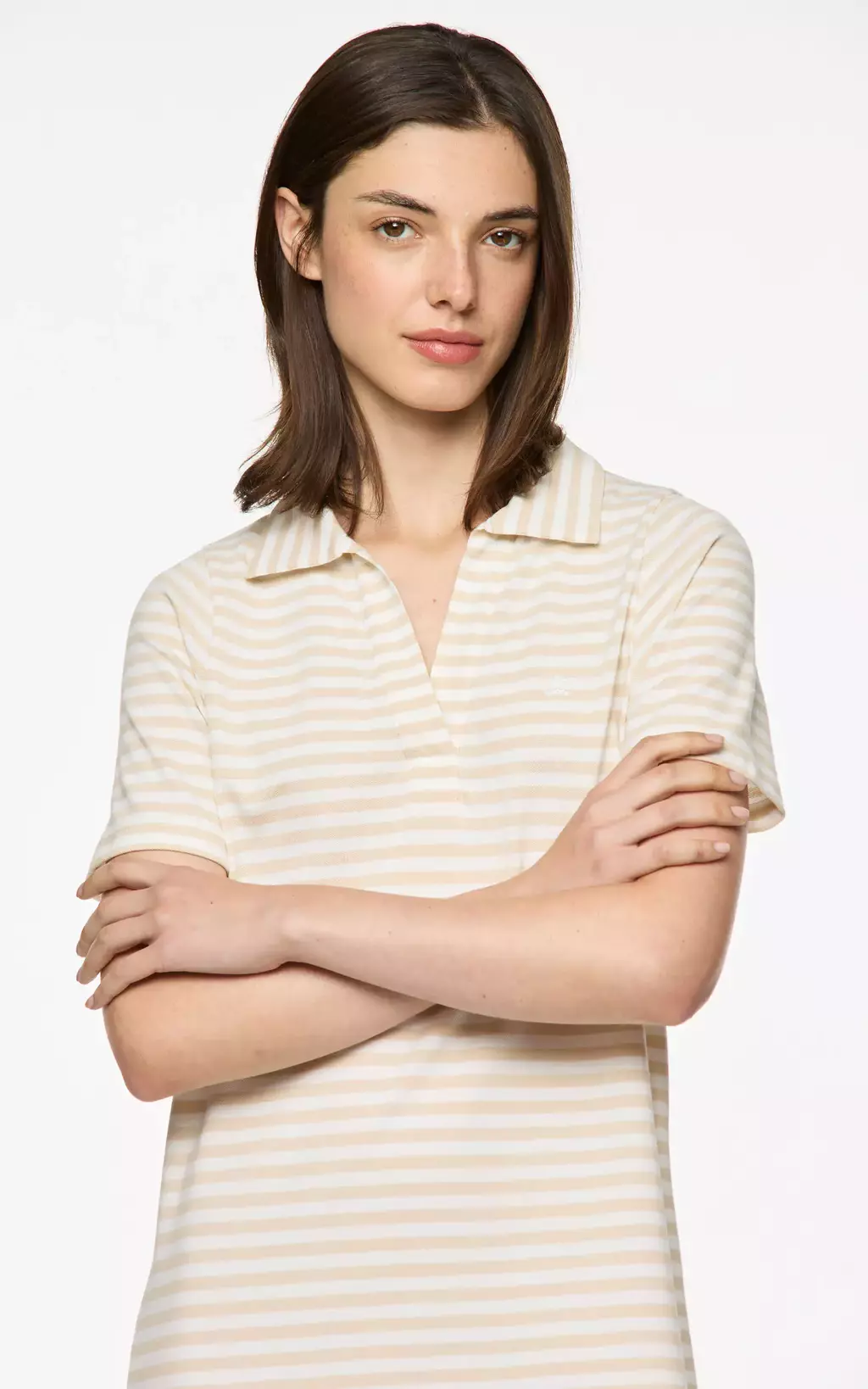 Vestido de punto largo. Manga corta, escote con cartera abierta y cuello. Tiene tajos en los laterales. Lleva corona hd en delantero. Producto fabricado en perú. Una opción ideal para los días cálidos, combinando frescura y estilo con un diseño que se adapta a diferentes ocasiones.