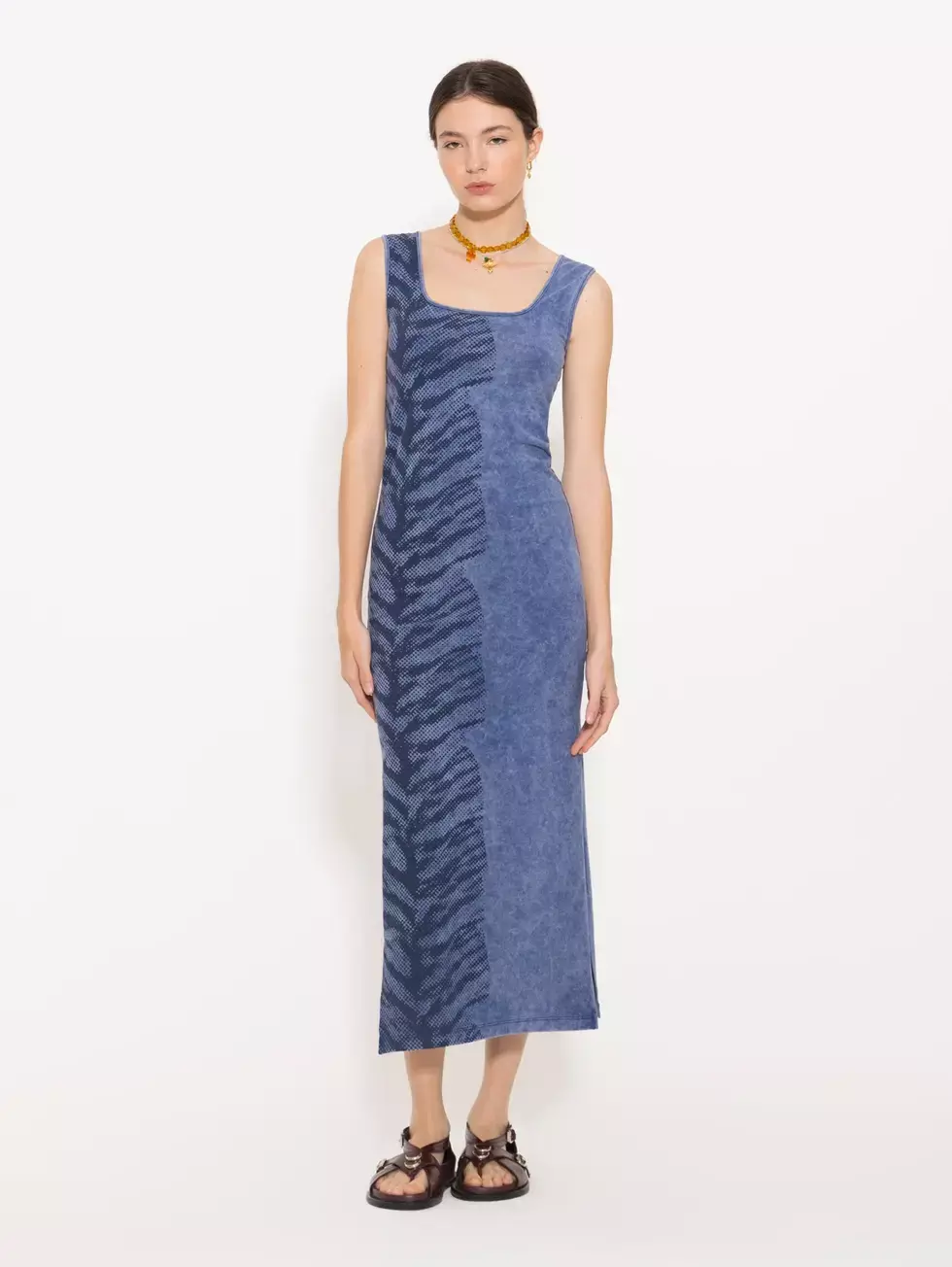 Vestido Lucky largo hasta los talones, confeccionado en algodón pima orgánico. De calce ajustado al cuerpo, presenta escote cuadrado, estampa en delantero y logo bordado en la espalda. Una prenda fresca y sostenible para todos los días.